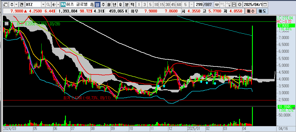 😊 오늘은 2025년 4월 16일, 주식 시장을 뜨겁게 달군 허츠 글로벌 홀딩스(HTZ) 이야기를 풀어볼게요.