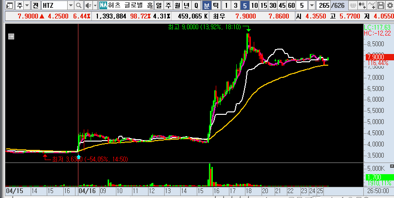 🔥2025년 4월 16일, HTZ 주가가 56.44%에서 최대 145%까지 폭등했어요! 📈