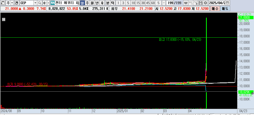 CEP 주식은 4월 23일 엄청난 변동성을 보여줬어요.
