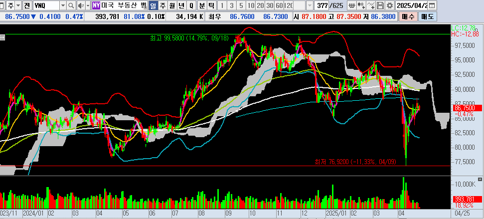 2025년 4월 기준 금리 인상 우려 있지만, 데이터센터 수요가 커서 VNQ 안정적이에요.