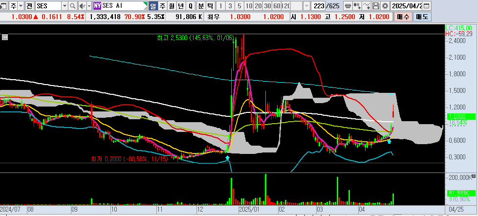 파트너십 발표: SES AI는 4월 초에 글로벌 자동차 회사(GM 등)와 리튬메탈 배터리 공급 계약을 맺었다는 소식이 있었어요. 이런 협력은 SES AI의 기술력을 인정받은 거라서 주가 상승에 큰 역할을 했어요!