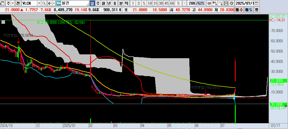 2025년 7월 18일 기준, 볼컨(VLCN)의 주가는 21달러, 시가총액은 약 1,176만 달러로 집계되고 있어요.